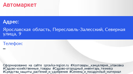 Автомаркет по адресу Ярославская область, Переславль-Залесский, Северная улица, 9 в дальнейшем Организация, размещена в следующих категориях: