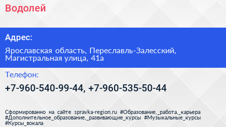 Водолей по адресу Ярославская область, Переславль-Залесский, Магистральная улица, 41а в дальнейшем Организация, размещена в следующих категориях:
