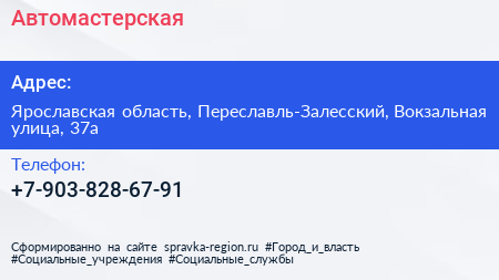 Автомастерская по адресу Ярославская область, Переславль-Залесский, Вокзальная улица, 37а в дальнейшем Организация, размещена в следующих категориях: