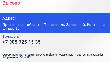 Высоко по адресу Ярославская область, Переславль-Залесский, Ростовская улица, 1а в дальнейшем Организация, размещена в следующих категориях: