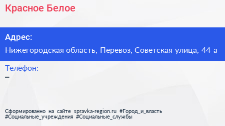 Красное & Белое по адресу Нижегородская область, Перевоз, Советская улица, 44 а в дальнейшем Организация, размещена в следующих категориях: