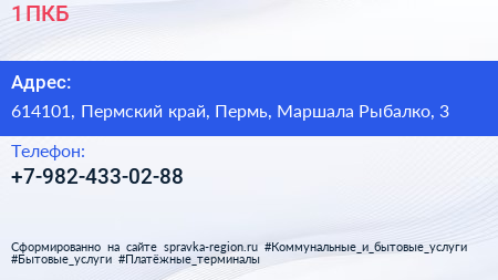 1 ПКБ по адресу 614101, Пермский край, Пермь, Маршала Рыбалко, 3 в дальнейшем Организация, размещена в следующих категориях: