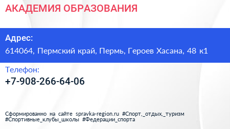 АКАДЕМИЯ ОБРАЗОВАНИЯ по адресу 614064, Пермский край, Пермь, Героев Хасана, 48 к1 в дальнейшем Организация, размещена в следующих категориях: