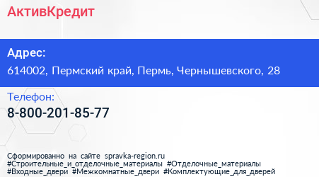 АктивКредит по адресу 614002, Пермский край, Пермь, Чернышевского, 28 в дальнейшем Организация, размещена в следующих категориях: