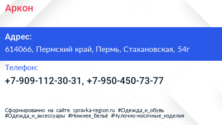 Аркон по адресу 614066, Пермский край, Пермь, Стахановская, 54г в дальнейшем Организация, размещена в следующих категориях: