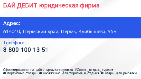 БАЙ ДЕБИТ, юридическая фирма по адресу 614010, Пермский край, Пермь, Куйбышева, 95Б в дальнейшем Организация, размещена в следующих категориях:
