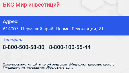 БКС Мир инвестиций по адресу 614007, Пермский край, Пермь, Революции, 21 в дальнейшем Организация, размещена в следующих категориях: