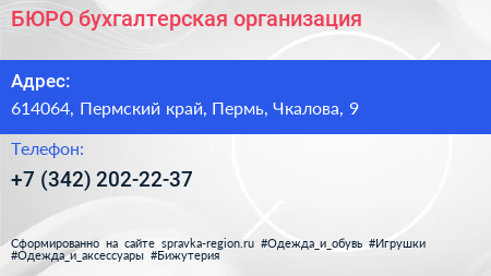 БЮРО, бухгалтерская организация по адресу 614064, Пермский край, Пермь, Чкалова, 9 в дальнейшем Организация, размещена в следующих категориях: