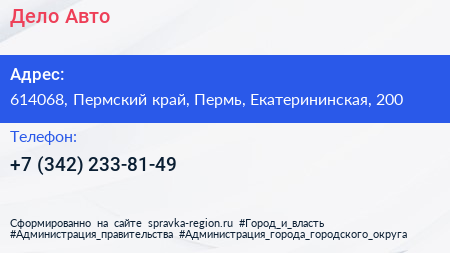 Дело Авто по адресу 614068, Пермский край, Пермь, Екатерининская, 200 в дальнейшем Организация, размещена в следующих категориях: