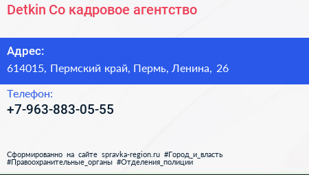 Detkin & Co, кадровое агентство по адресу 614015, Пермский край, Пермь, Ленина, 26 в дальнейшем Организация, размещена в следующих категориях:
