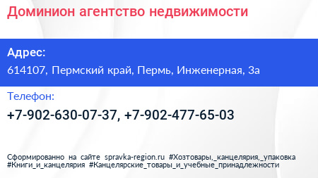 Доминион, агентство недвижимости по адресу 614107, Пермский край, Пермь, Инженерная, 3а в дальнейшем Организация, размещена в следующих категориях: