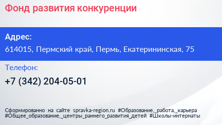 Фонд развития конкуренции по адресу 614015, Пермский край, Пермь, Екатерининская, 75 в дальнейшем Организация, размещена в следующих категориях: