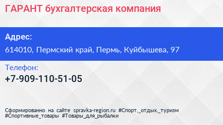 ГАРАНТ, бухгалтерская компания по адресу 614010, Пермский край, Пермь, Куйбышева, 97 в дальнейшем Организация, размещена в следующих категориях: