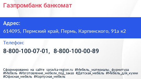 Газпромбанк, банкомат по адресу 614095, Пермский край, Пермь, Карпинского, 91а к2 в дальнейшем Организация, размещена в следующих категориях: