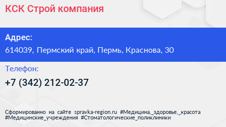 КСК-Строй, компания по адресу 614039, Пермский край, Пермь, Краснова, 30 в дальнейшем Организация, размещена в следующих категориях: