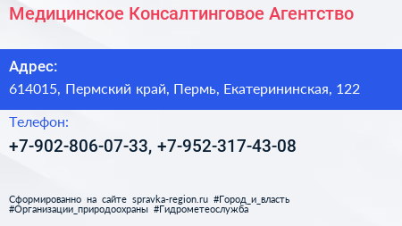 Медицинское Консалтинговое Агентство по адресу 614015, Пермский край, Пермь, Екатерининская, 122 в дальнейшем Организация, размещена в следующих категориях: