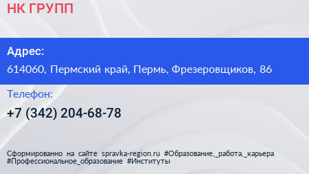 НК ГРУПП по адресу 614060, Пермский край, Пермь, Фрезеровщиков, 86 в дальнейшем Организация, размещена в следующих категориях: