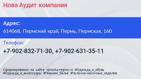 Нова-Аудит, компания по адресу 614068, Пермский край, Пермь, Пермская, 160 в дальнейшем Организация, размещена в следующих категориях:
