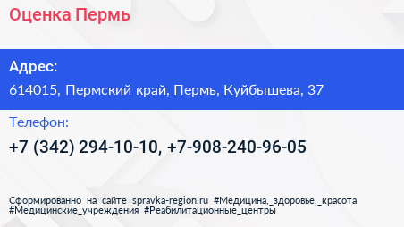 Оценка-Пермь по адресу 614015, Пермский край, Пермь, Куйбышева, 37 в дальнейшем Организация, размещена в следующих категориях: