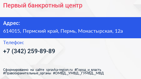Первый банкротный центр по адресу 614015, Пермский край, Пермь, Монастырская, 12а в дальнейшем Организация, размещена в следующих категориях: