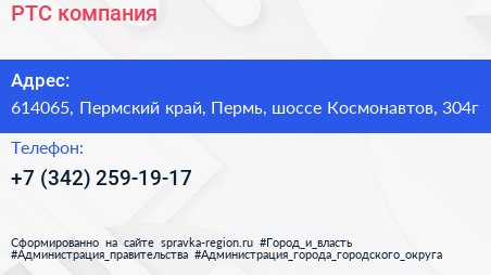 РТС, компания по адресу 614065, Пермский край, Пермь, шоссе Космонавтов, 304г в дальнейшем Организация, размещена в следующих категориях:
