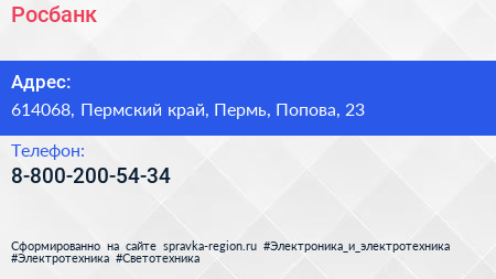 Росбанк по адресу 614068, Пермский край, Пермь, Попова, 23 в дальнейшем Организация, размещена в следующих категориях: