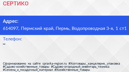 СЕРТИКО по адресу 614097, Пермский край, Пермь, Водопроводная 3-я, 1 ст1 в дальнейшем Организация, размещена в следующих категориях: