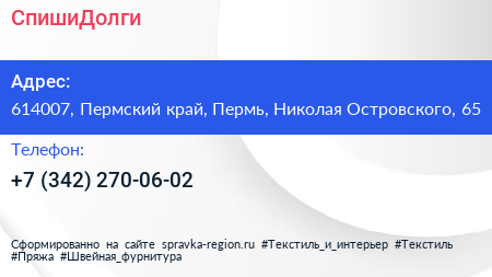 СпишиДолги по адресу 614007, Пермский край, Пермь, Николая Островского, 65 в дальнейшем Организация, размещена в следующих категориях: