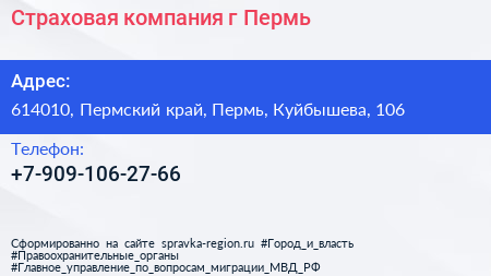 Страховая компания, г. Пермь по адресу 614010, Пермский край, Пермь, Куйбышева, 106 в дальнейшем Организация, размещена в следующих категориях: