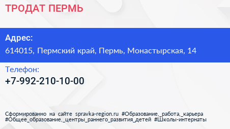 ТРОДАТ-ПЕРМЬ по адресу 614015, Пермский край, Пермь, Монастырская, 14 в дальнейшем Организация, размещена в следующих категориях: