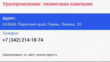Уралпромлизинг, лизинговая компания по адресу 614068, Пермский край, Пермь, Ленина, 92 в дальнейшем Организация, размещена в следующих категориях: