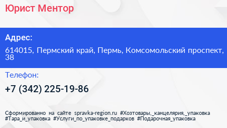 Юрист Ментор по адресу 614015, Пермский край, Пермь, Комсомольский проспект, 38 в дальнейшем Организация, размещена в следующих категориях: