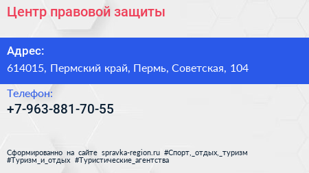 Центр правовой защиты по адресу 614015, Пермский край, Пермь, Советская, 104 в дальнейшем Организация, размещена в следующих категориях: