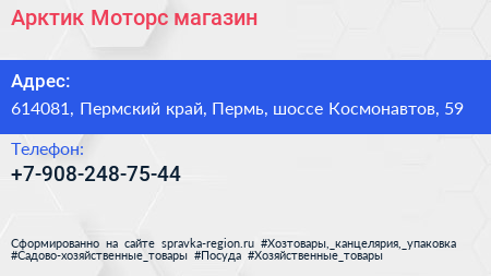 Арктик Моторс, магазин по адресу 614081, Пермский край, Пермь, шоссе Космонавтов, 59 в дальнейшем Организация, размещена в следующих категориях: