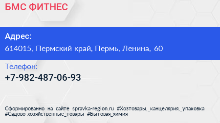 БМС ФИТНЕС по адресу 614015, Пермский край, Пермь, Ленина, 60 в дальнейшем Организация, размещена в следующих категориях: