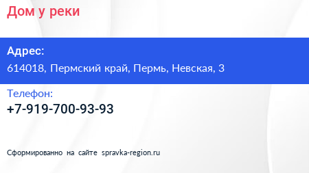 Дом у реки по адресу 614018, Пермский край, Пермь, Невская, 3 в дальнейшем Организация, размещена в следующих категориях: