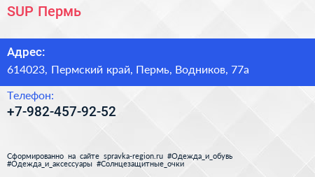 SUP Пермь по адресу 614023, Пермский край, Пермь, Водников, 77а в дальнейшем Организация, размещена в следующих категориях: