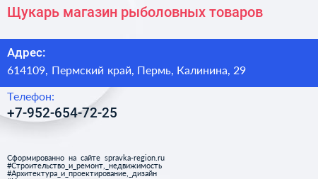 Щукарь, магазин рыболовных товаров по адресу 614109, Пермский край, Пермь, Калинина, 29 в дальнейшем Организация, размещена в следующих категориях: