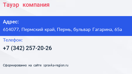 Для связи с организацией воспользуйтесь номером телефона: +7 (342) 257-20-26. Пн: c 09:00-18:00, Вт: c 09:00-18:00, Ср: c 09:00-18:00, Чт: c 09:00-18:00, Пт: c 09:00-18:00, Сб: выходной, Вс: выходной, вы можете обратиться в эту организацию.