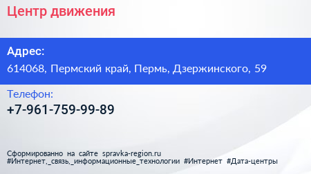 Центр движения по адресу 614068, Пермский край, Пермь, Дзержинского, 59 в дальнейшем Организация, размещена в следующих категориях: