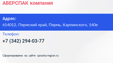 АВЕРСПАК, компания по адресу 614012, Пермский край, Пермь, Карпинского, 140е в дальнейшем Организация, размещена в следующих категориях: