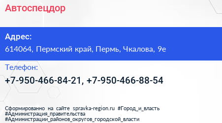 Автоспецдор по адресу 614064, Пермский край, Пермь, Чкалова, 9е в дальнейшем Организация, размещена в следующих категориях: