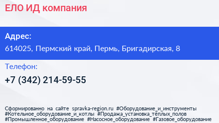 ЕЛО-ИД, компания по адресу 614025, Пермский край, Пермь, Бригадирская, 8 в дальнейшем Организация, размещена в следующих категориях: