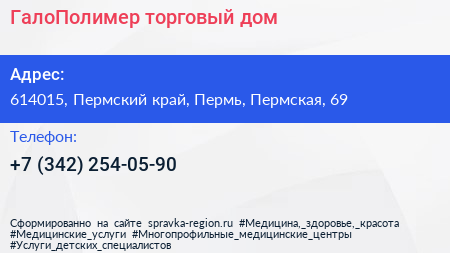 ГалоПолимер, торговый дом по адресу 614015, Пермский край, Пермь, Пермская, 69 в дальнейшем Организация, размещена в следующих категориях: