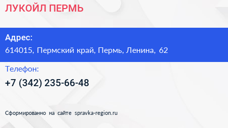 ЛУКОЙЛ-ПЕРМЬ по адресу 614015, Пермский край, Пермь, Ленина, 62 в дальнейшем Организация, размещена в следующих категориях: