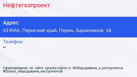 Нефтегазпроект по адресу 614046, Пермский край, Пермь, Барамзиной, 18 в дальнейшем Организация, размещена в следующих категориях:
