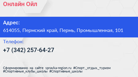 Онлайн-Ойл по адресу 614055, Пермский край, Пермь, Промышленная, 101 в дальнейшем Организация, размещена в следующих категориях: