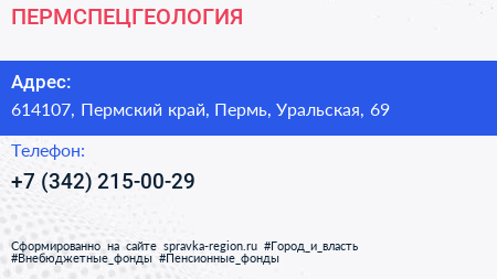 ПЕРМСПЕЦГЕОЛОГИЯ по адресу 614107, Пермский край, Пермь, Уральская, 69 в дальнейшем Организация, размещена в следующих категориях:
