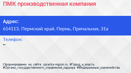 ПМК, производственная компания по адресу 614113, Пермский край, Пермь, Причальная, 31а в дальнейшем Организация, размещена в следующих категориях:
