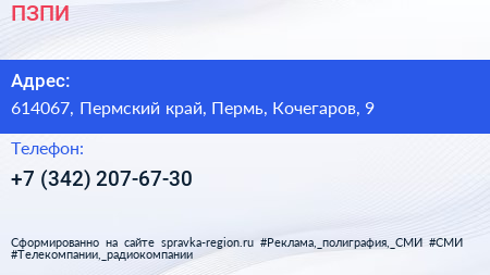 ПЗПИ по адресу 614067, Пермский край, Пермь, Кочегаров, 9 в дальнейшем Организация, размещена в следующих категориях: